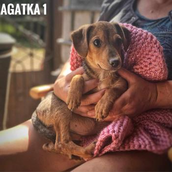 Agatka to półroczna sunia, która nie miała łatwej przeszłości.