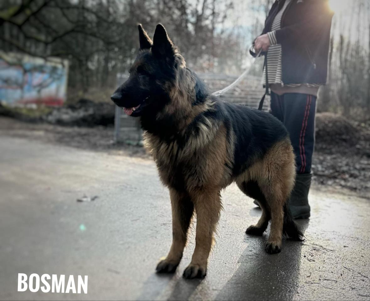 Bosman to około 1,5 roczny psiak w typie owczarka niemieckiego.