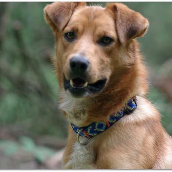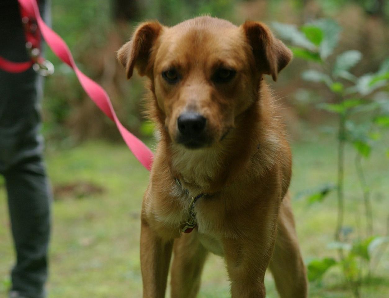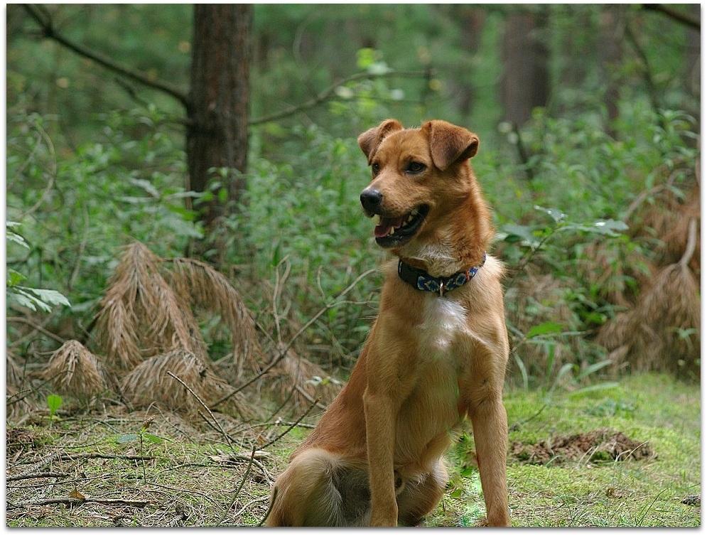 Średniej wielkości, sięga do kolana. Trafił do przytuliska skrajnie wychudzony, powoli nabiera masy, ale nadal jeszcze wyraźnie widać żebra. Ile się błąkał, jak długo nie jadł??