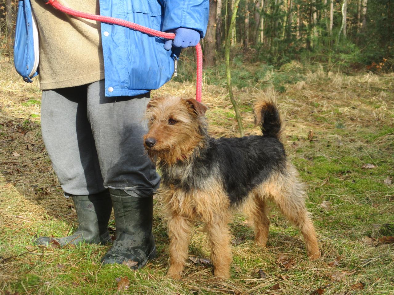 Deli to bardzo energiczna suczka w typie teriera. Waży około 15 kg. Uwielbia przebywać z człowiekiem, być głaskana, umie chodzić na smyczy, jednak ciągnie. Pozostawiona sama sobie niszczy, na wybiegu wspina się po ogrodzeniach.