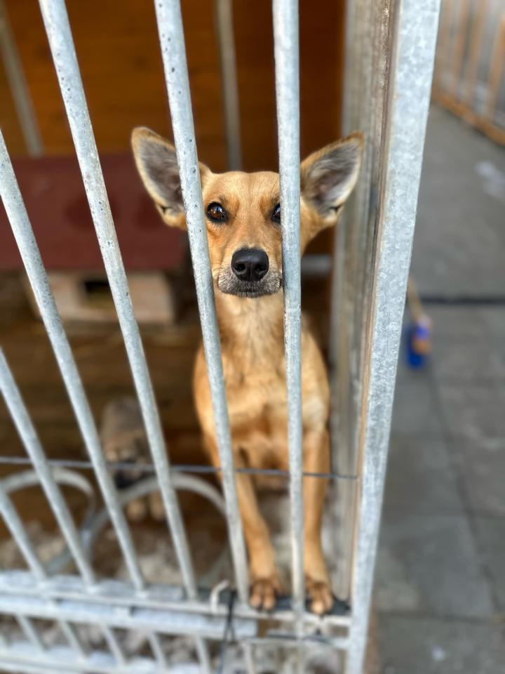 Iris to około 1,5 roczna suczka, która bardzo pragnie kontaktu z człowiekiem.