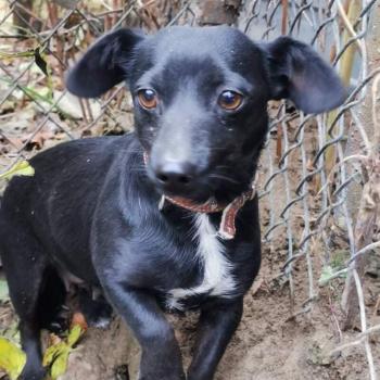 Młoda suczka przyjęta do schroniska z szczeniakami. Malutka, waży około 4 kilogramów. Troszkę nieufna.