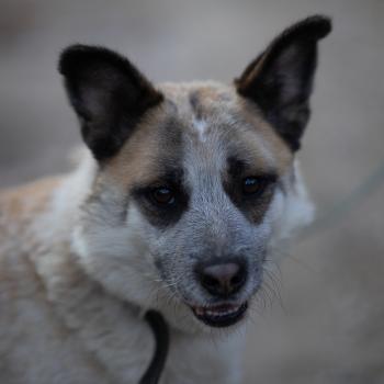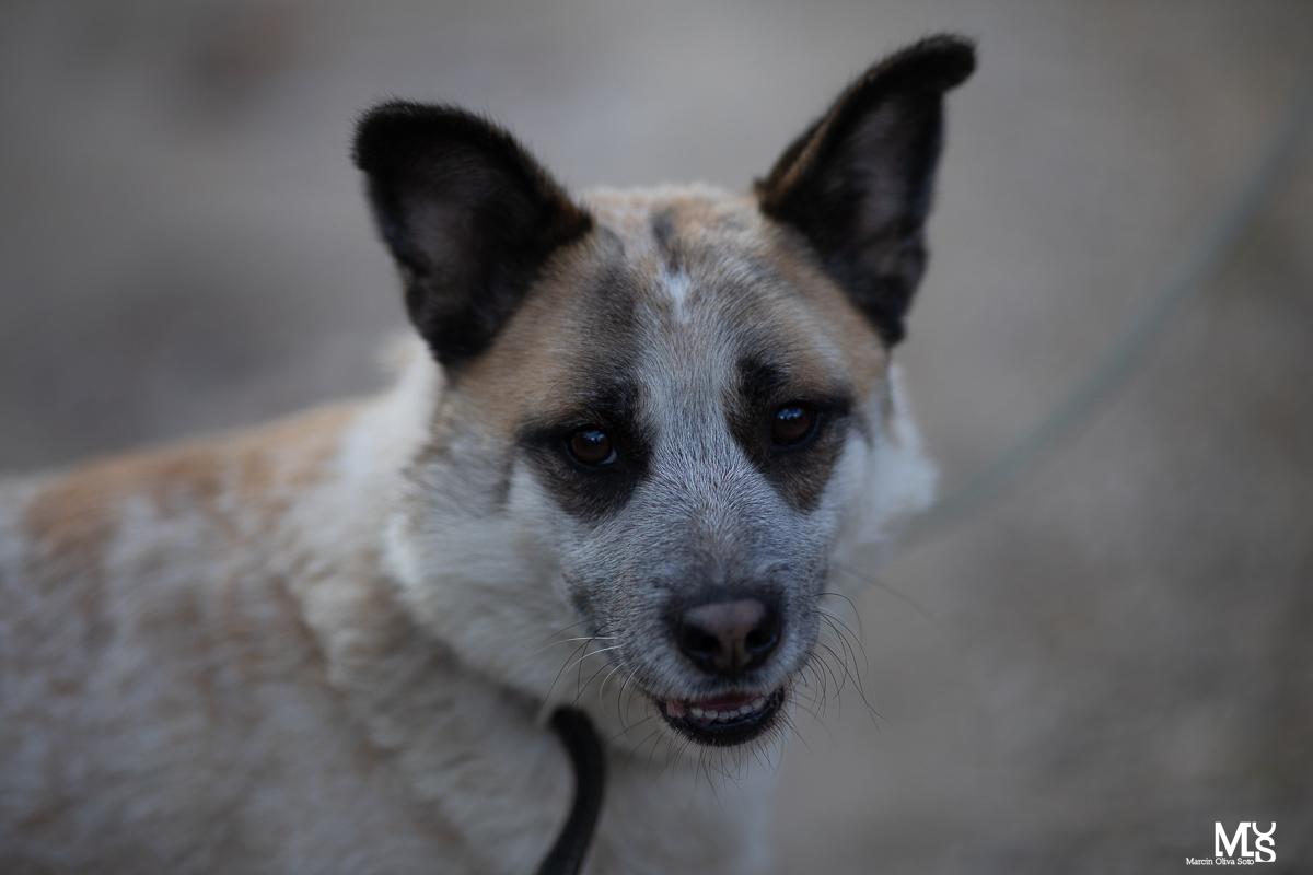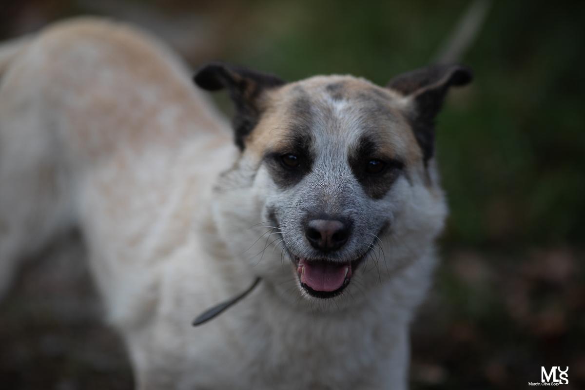 Okular to pies o bardzo wyjątkowej urodzie. Ma około 4 lat. Okular zanim trafił do nas, błąkał się w okolicach Lęborku. Początkowo był bardzo nieufny, przed dwa tygodnie oswajał się z naszą obecnością, zanim w końcu do nas podszedł, jakby dając nam znać, że jest gotowy pojechać z nami. Bardzo ładnie chodzi na smyczy. Jest psem bardzo stonowanym, spokojnym i ułożonym. Przyjaźni się z Irą, z którą bardzo lubi chodzić na spacery. Bardzo potrzebuje kontaktu z człowiekiem, jego bliskości i uwagi. Ważny około 24 kilogramów. Bardzo dobrze dogaduje się z sukami, nie dogaduje się natomiast psami.