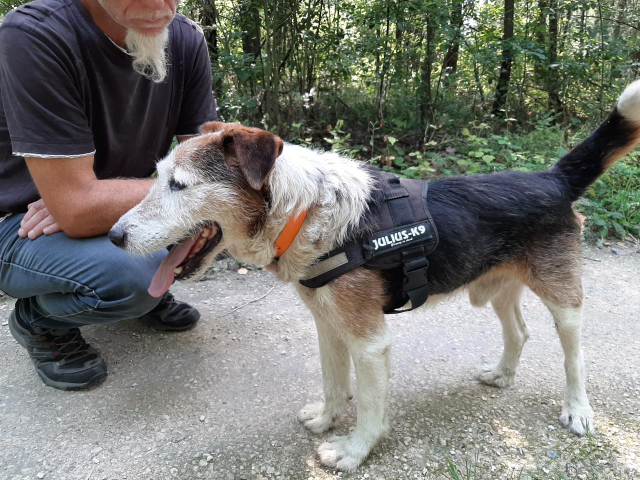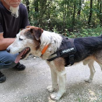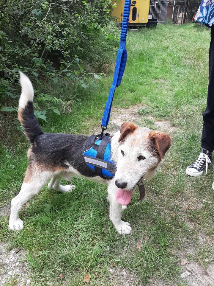 Pies w typie foksteriera, grzeczny, ułożony, spokojny pies. Ładnie chodzi na smyczy. Łagodnie nastawiony do człowieka, chętny do kontaktów i głaskania. Mało wymagający na co dzień.