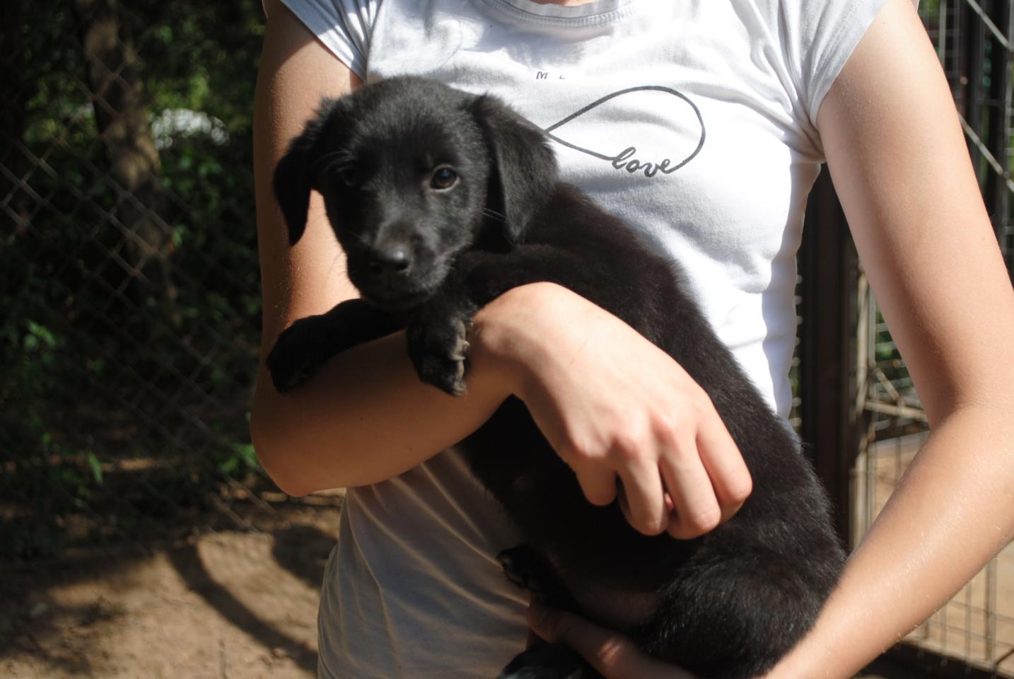 Piesek około 8 tygodniowy, do bezpłatnej adopcji, obowiązuje podpisanie umowy adopcyjnej. Matka piesków jest dość wysoka, ale drobnej kości- waga około 17 kg. Ojciec nie jest znany. Pieski (tutaj piesek czarny) są odpchlone, odrobaczone i pierwszy raz zaszczepione. Mają książeczki zdrowia.