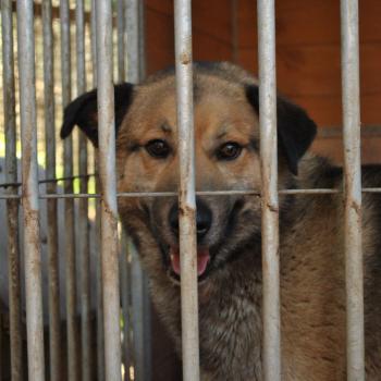 Pies z łancucha, który trzeba było odcinać specjalnymi nożycami. Ma ok. 3-4 lata