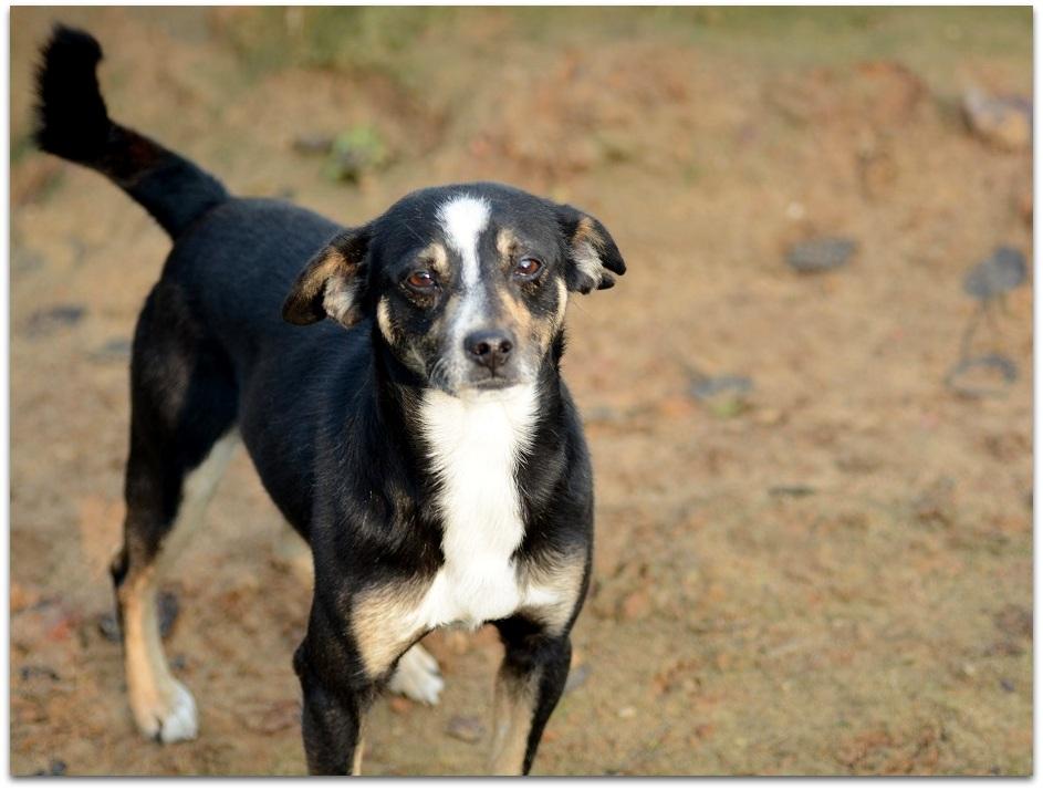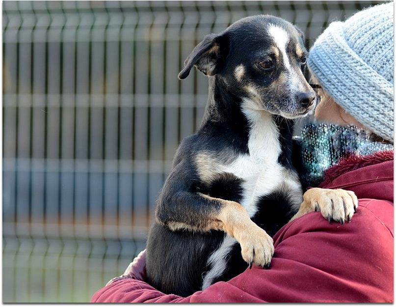 Długo błąkał się ze złamana tylną łapką, która już zrosła się i jest nieco krótsza, ale to zupełnie mu nie przeszkadza w normalnym funkcjonowaniu. Jego przyjazne, radosne usposobienie w stu procentach rekompensuje tę małą niedoskonałość.