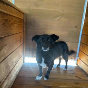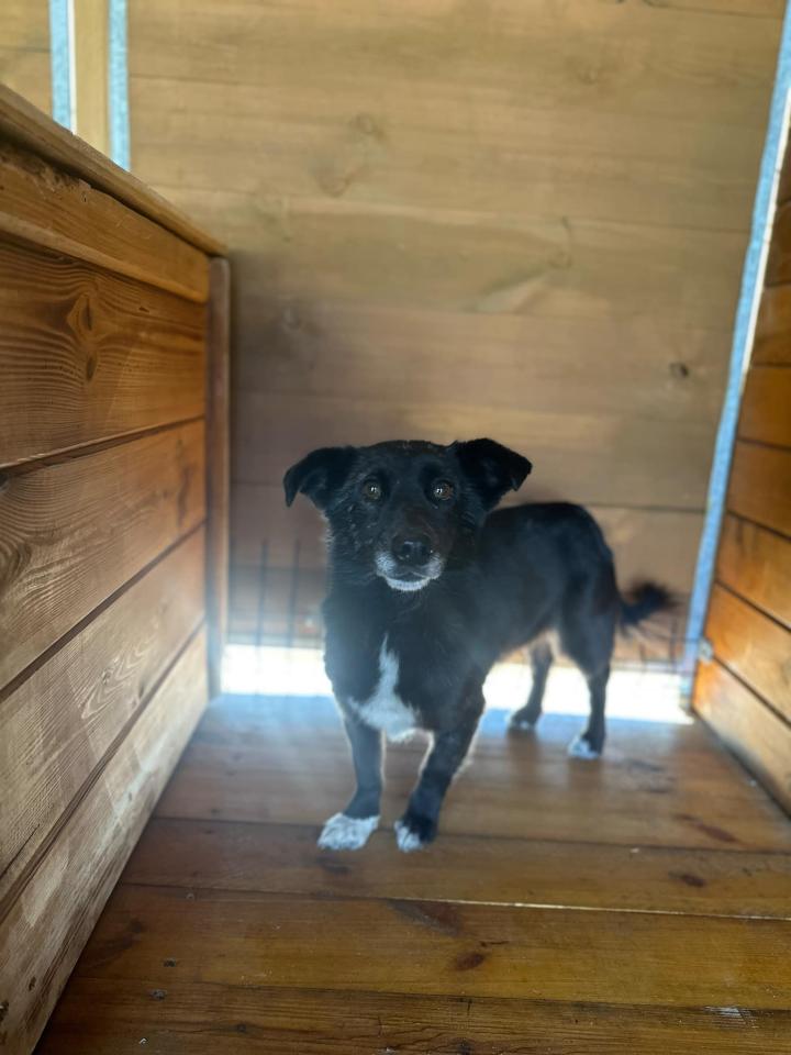 Krysia to jeszcze przestraszona suczka, ale z każdym dniem oswaja się z nowym otoczeniem.